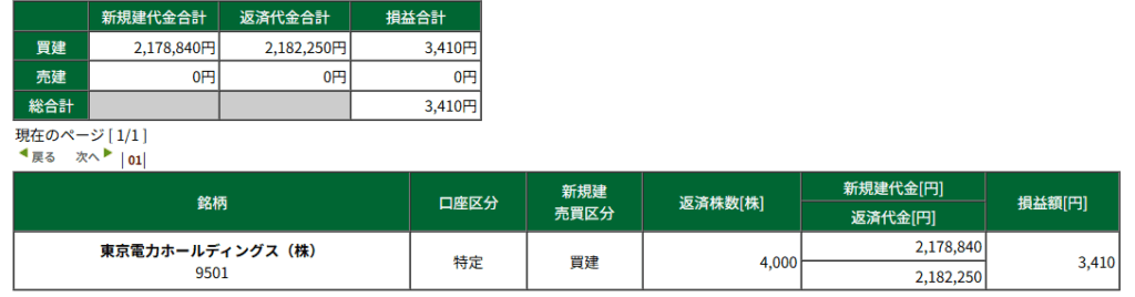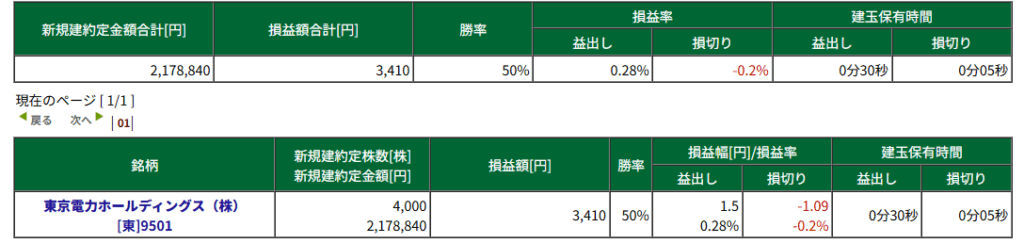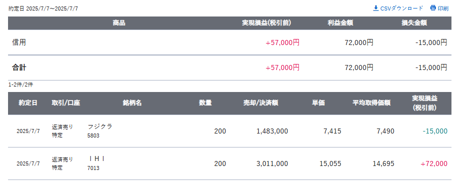 しかし、損切を出したフジクラの取引は、IHIの半分の決済額です。