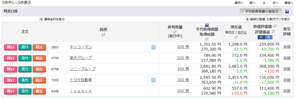 現在の保有銘柄の含み損益は、-50,940 円となりました。前日比(7/05) -10,500 円