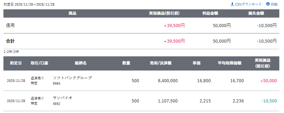 本日の妻の収支結果は、+39,500 円だったそうです。