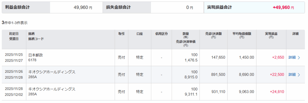 損失額 : -13,500 円 ※4回エントリー 各100株