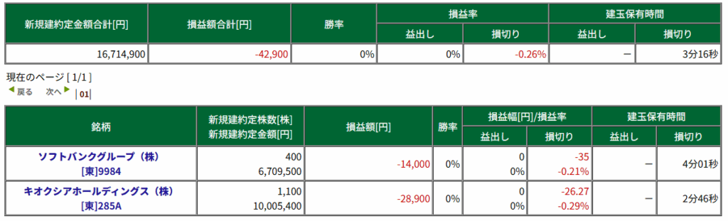 本日の僕は、コツコツ損切を重ねていき、大きな損失になってます。
