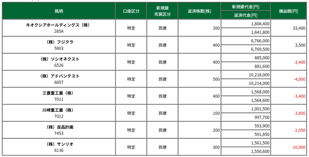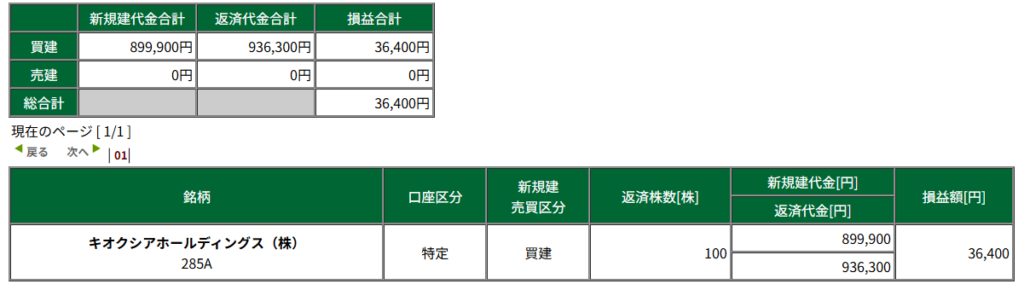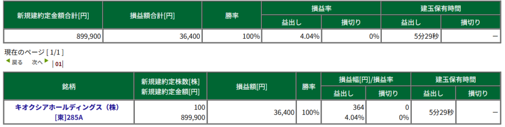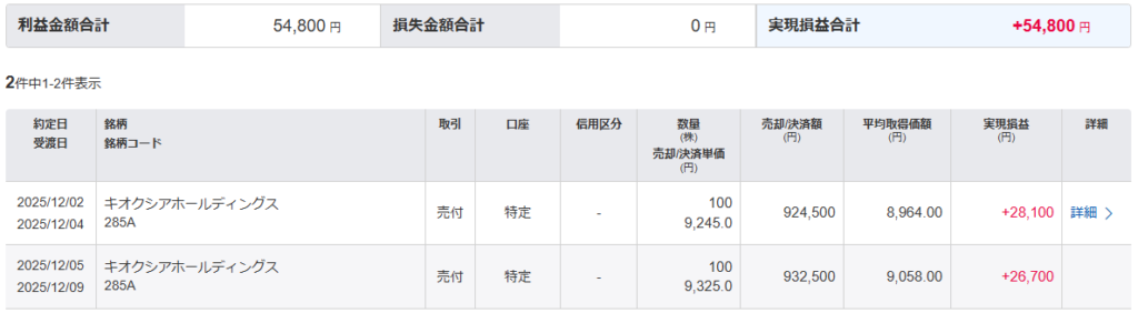 同種のキオクシアも寄付きから株価が急騰したので売却しました。