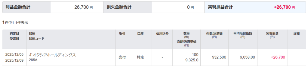 それと、本日は「285A : キオクシアホールディングス」を売却しました。
