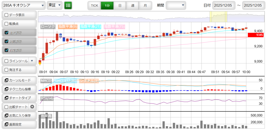 本日は「285A : キオクシアホールディングス」にも買いが入りそうと思いました。