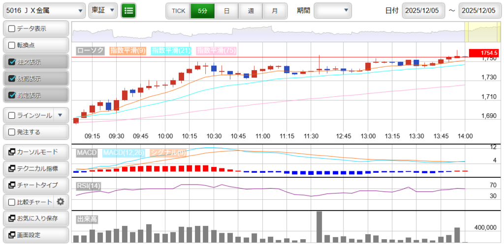 9:25あたりで下落してきとき、チャート上には表示されていませんが、