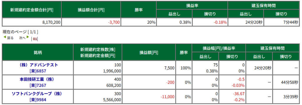 補足 : ソフトバンクGで3連続損切り発生。要エントリー根拠見直し