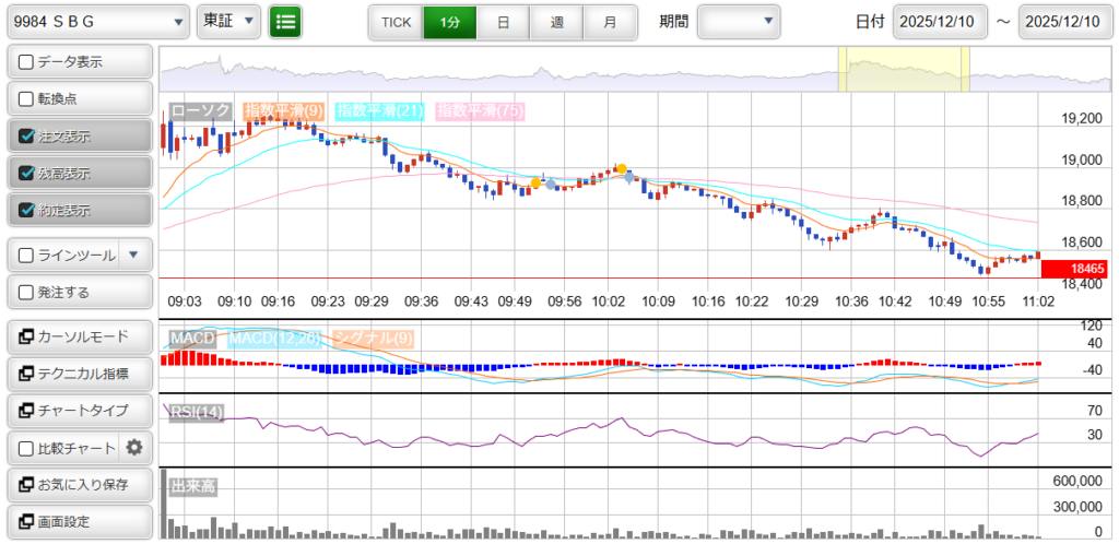 ソフトバックGのような寄与度の高い銘柄が下げるのは仕方ないです。