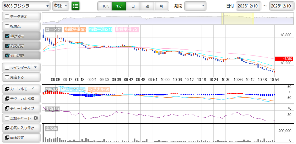 妻のエントリーから、「5803 : フジクラ」の値動きを見ていました。