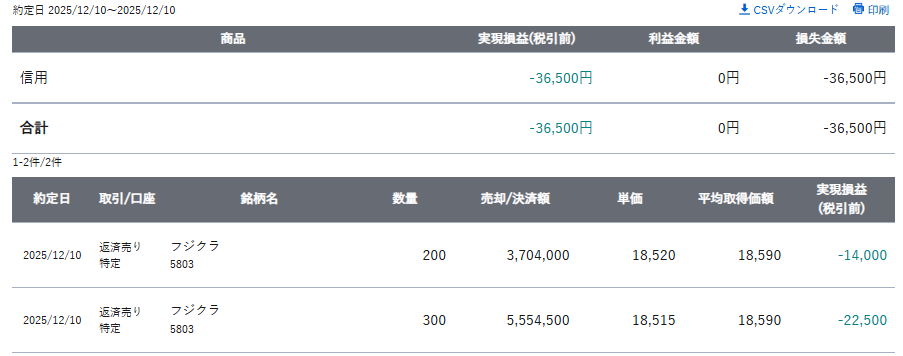 本日の妻の収支結果は、-36,500 円だったそうです。