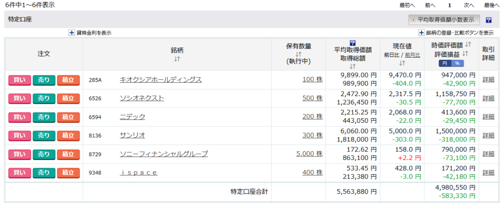 「8136 : サンリオ」だけの含み損で-318,000円というのはなかなか怖い。