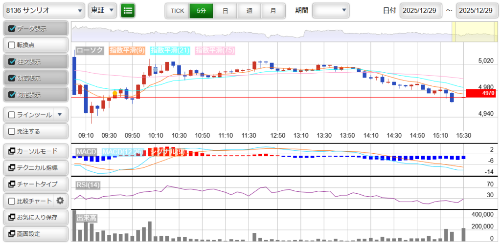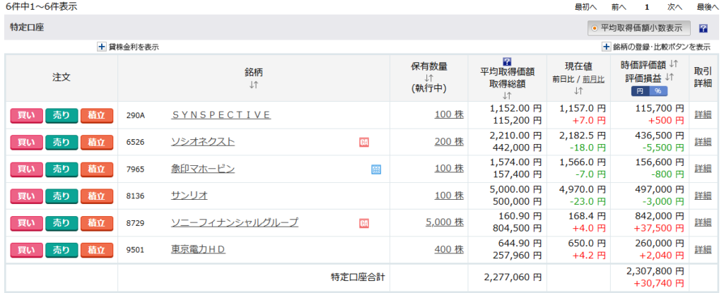 「6526 : ソシオネクスト」と「8136 : サンリオ」を買い増したいのですが、