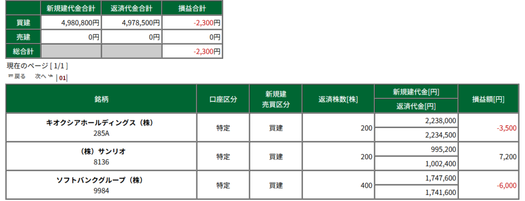 9984 SBG : -6,000円