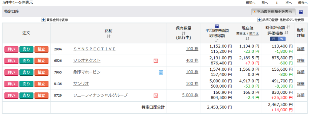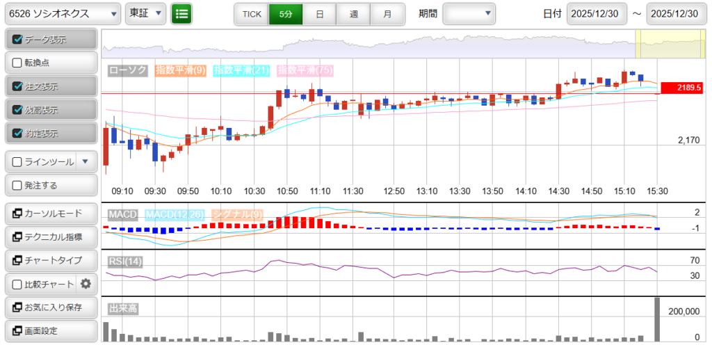 他の銘柄については、「6526 : ソシオネスクト」を買い増しました。