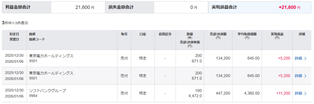 9501 : 東京電力HDを売却した理由 損益 : +10,400円