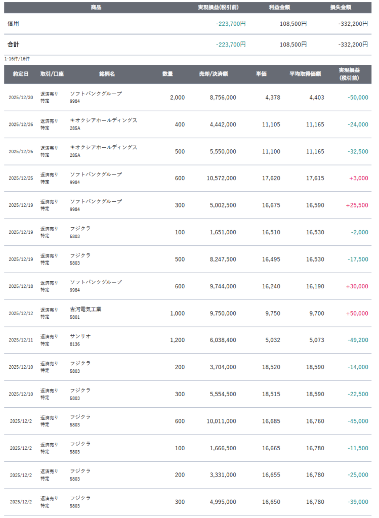12月の地合いが、妻のエントリーには不向きなのか、妻のエントリー根拠が間違っているのか、