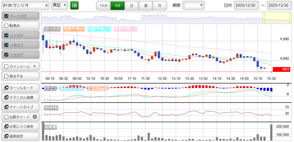 …が、相手は「8136 : サンリオ」さんでしたので、反発することなく下落し、すぐ損切り。