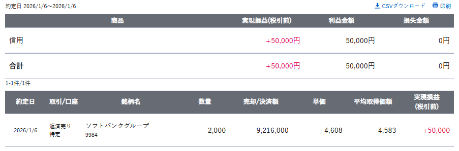 9984 : SBG 損益 : -4400円