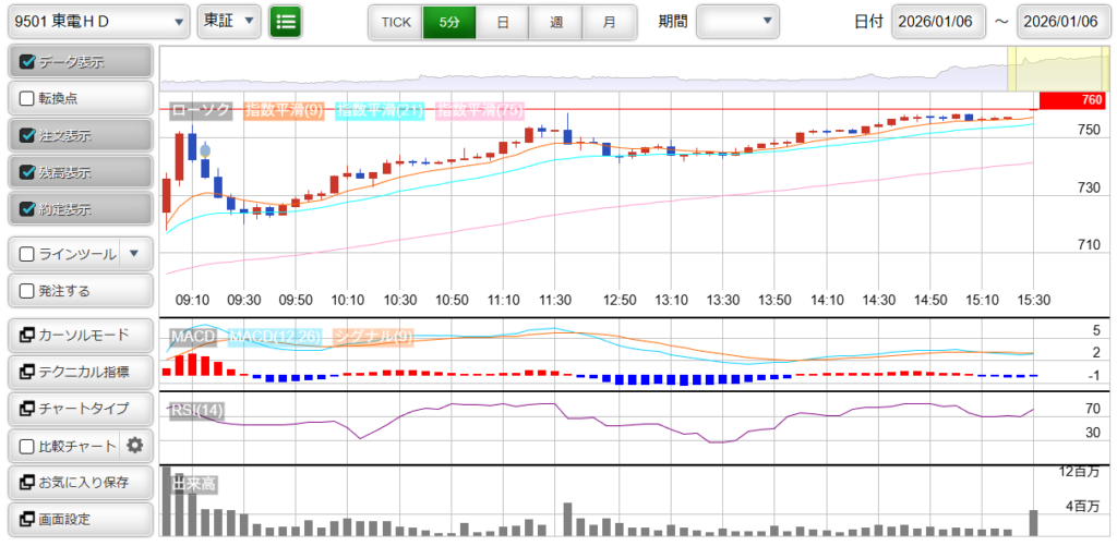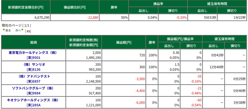 スリッページ発生リスクなども多く、「東京電力HD」は僕のトレードには不向きのようです。