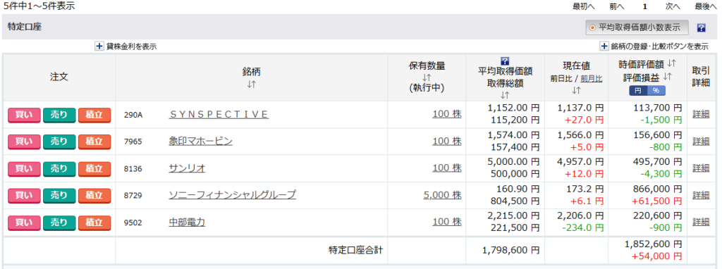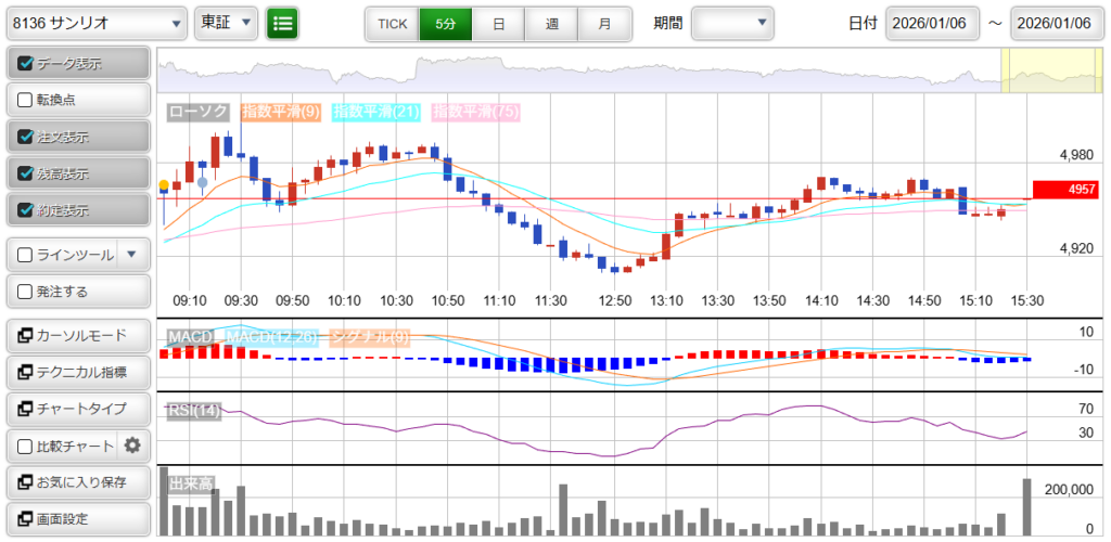 8136 : サンリオ 損益 : +300円