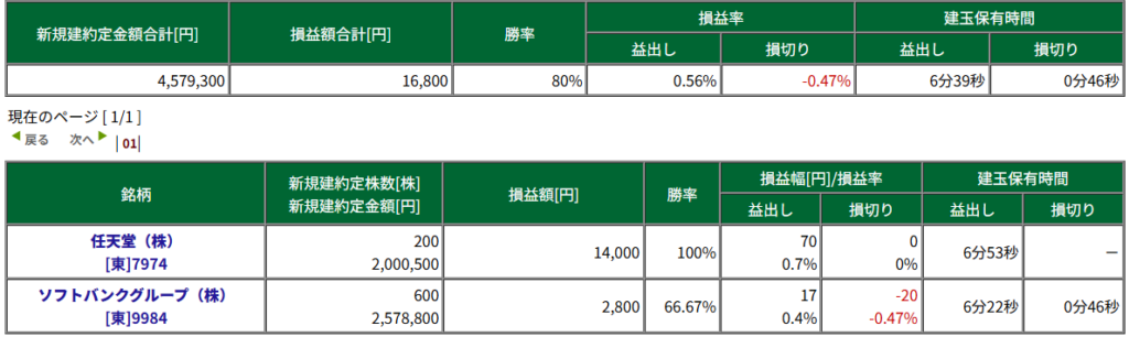 この日のトレードは、利益を確定するために、逆指値を前倒ししたのが、薄利になりました。