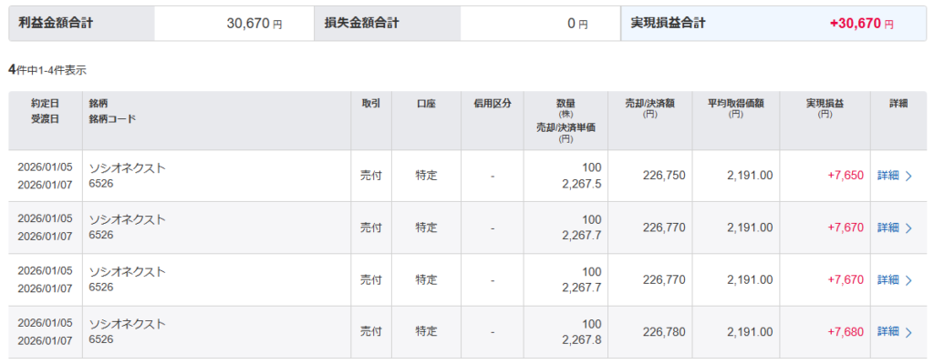 翌日さらに株価をあげていたので、売り時をミスした感がありますが、