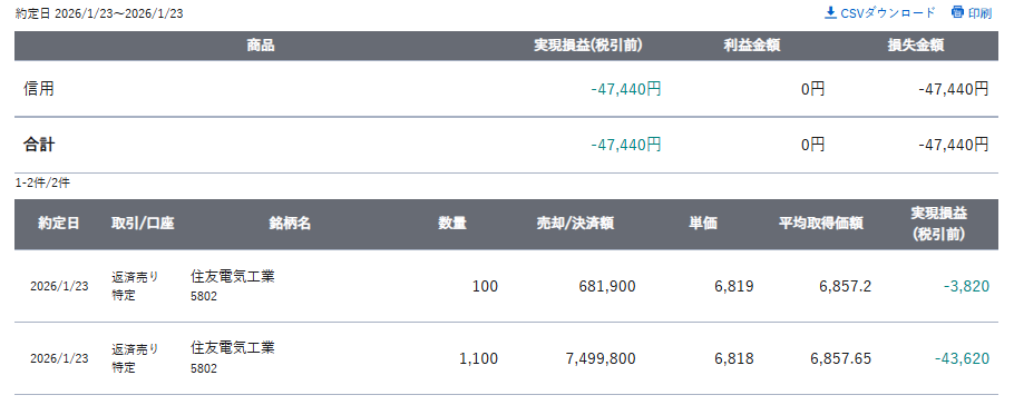 損失 : -47,440円
