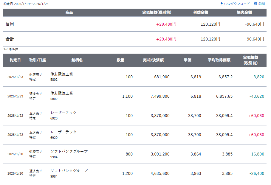 今週の妻の収支結果は、+29,480円でした。