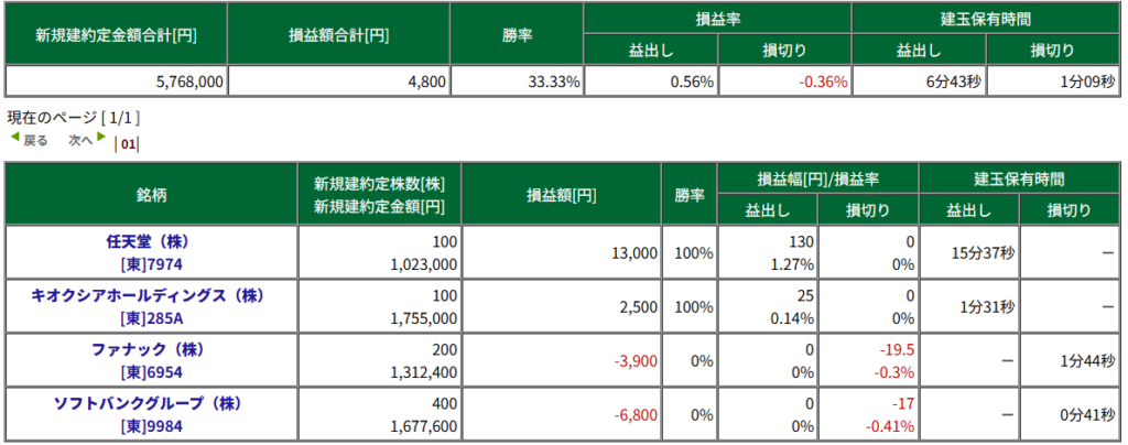 本日の収支結果は、+4,800円でした。
