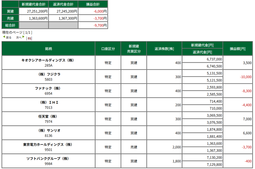 今週の収支結果は、-9,700円でした。