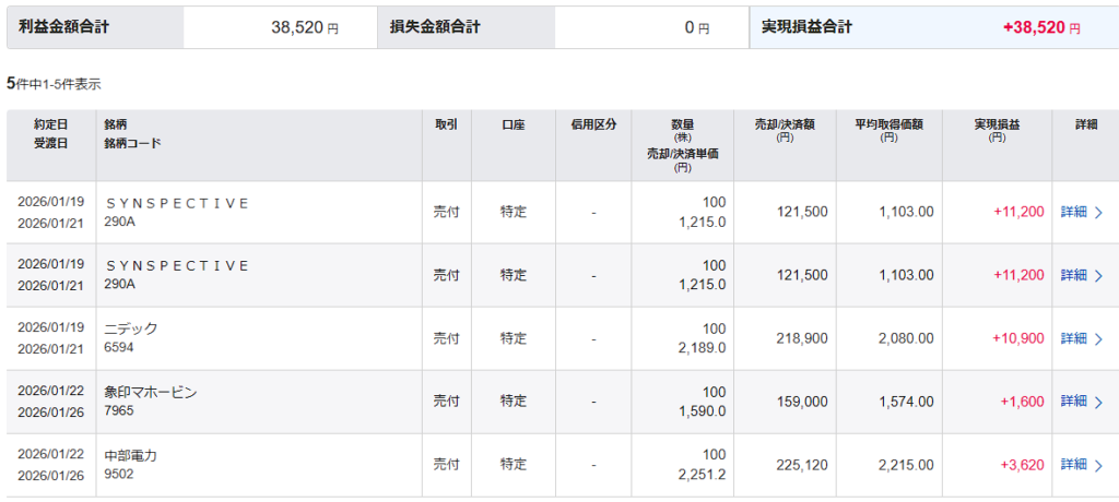 285A : キオクシア 損益 : +2,500円