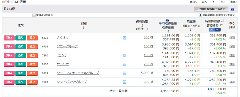 9984 : SBG 損益 : -6,800円