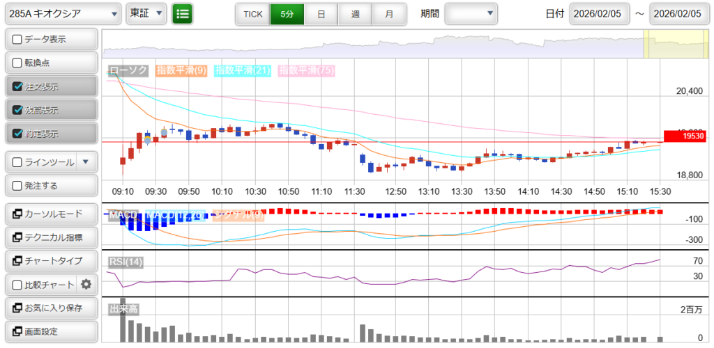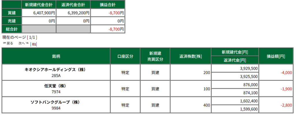 285A : キオクシア 損益 : -4,000円