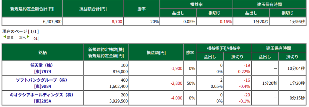 本日の収支結果は、-8,700円でした。
