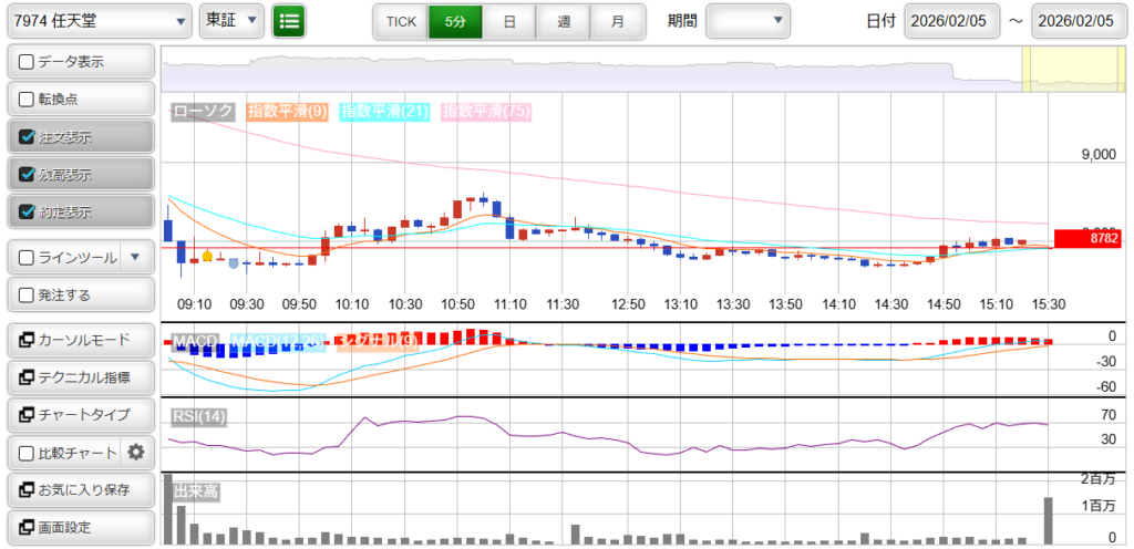 7974 : 任天堂 損益 : -1,900円