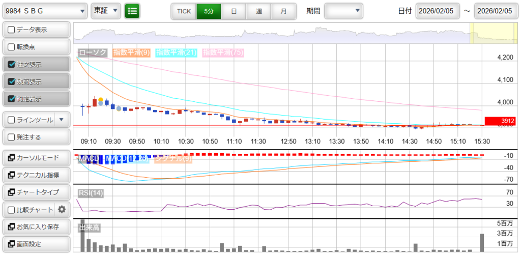 9984 : SBG 損益 : -2,800円