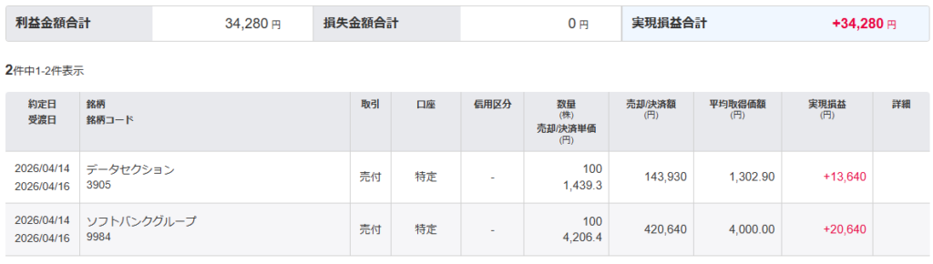 ソフトバンクグループもこれから上がりそうに思えるので、売らずに保有しておこうと思いましたが、先行き不安な世界情勢で明日は含み損になるかもと考え、微益で売却しました。