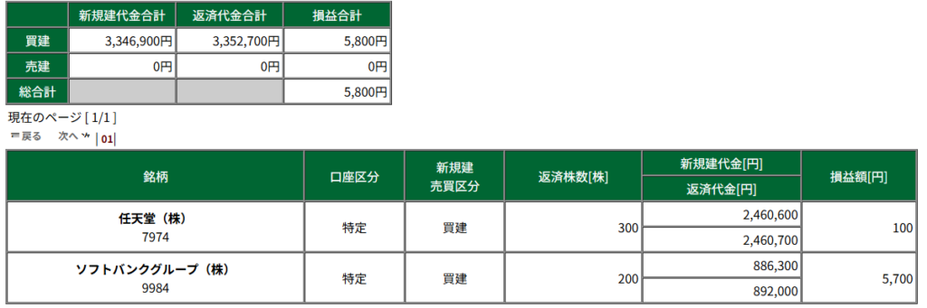 9984 : SBG 損益 : +5,700円