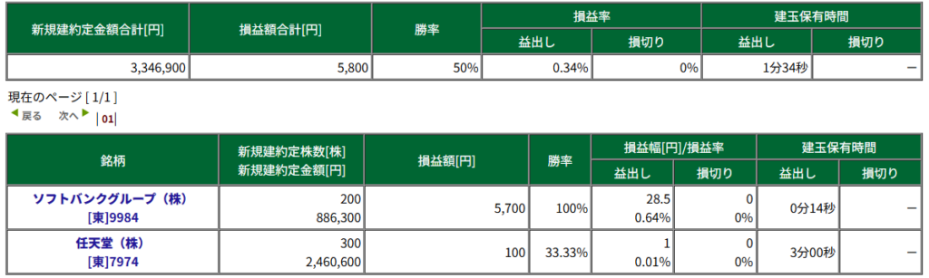 本日のトレードは全部で4回行い、所要時間は監視時間も入れて30分程度で終えました。