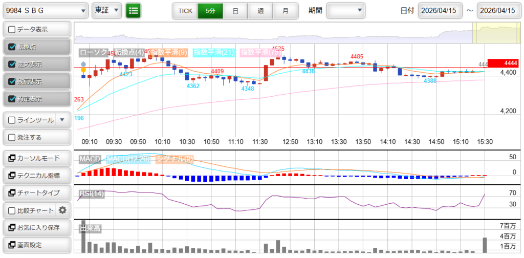 今日、僕が取引した銘柄は一時的な上げだけで、ほぼ取引したところが、本日の高値付近でした。