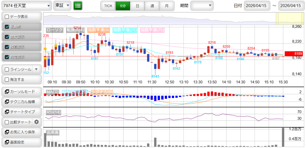 7974 : 任天堂 損益 : +100円