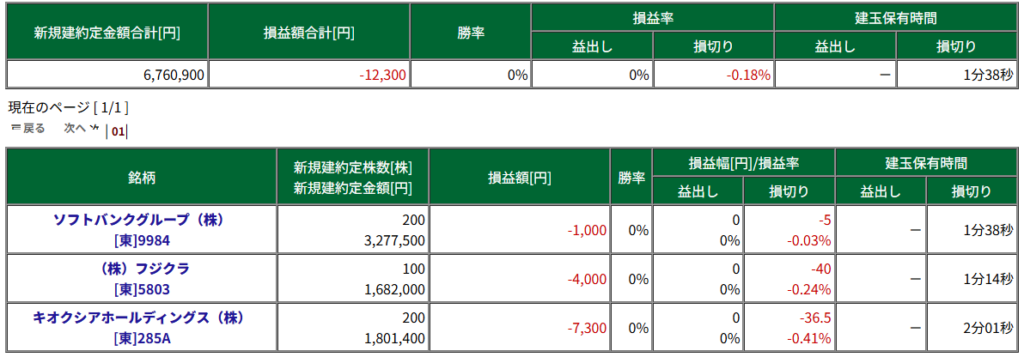 寄り付きから40分ほどで、取引回数が5回となり、本日も損失でおしまい。