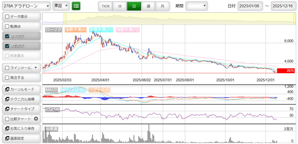 その中、この「278A : TERRADRONE」は今年の3月に上場来高値を付けてから、