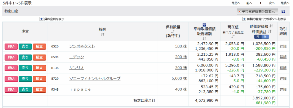 一日で、-10万超、含み損が増えるとか、サンリオで4%下げるとか怖いです。