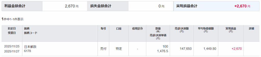 この買い増しにあたり、持ち銘柄の「日本郵政」を売却しました。