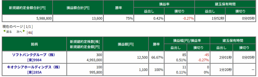 日計りの呼吸 参の型 朧(IFD損切りのみ)でトレードしました。