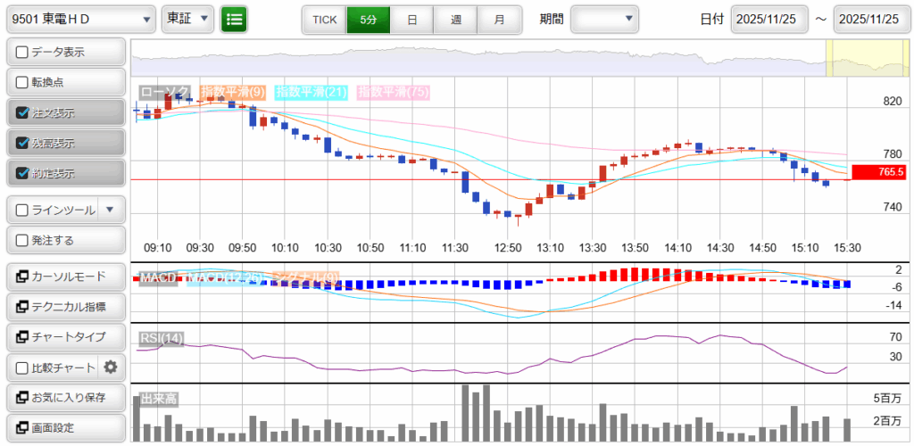 連日、株価操作がされているような変な値動きをしている「9501 : 東京電力HD」