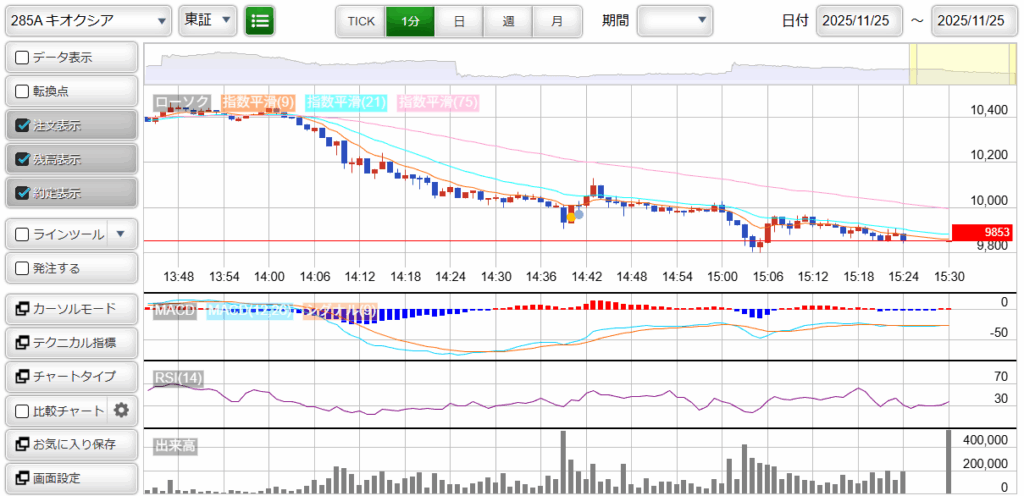「285A : キオクシアホールディングス」は空売りはプレミアム料金対象銘柄です。