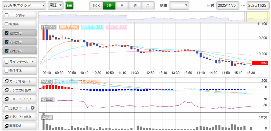 こちらは、朝、妻がエントリーした銘柄です。