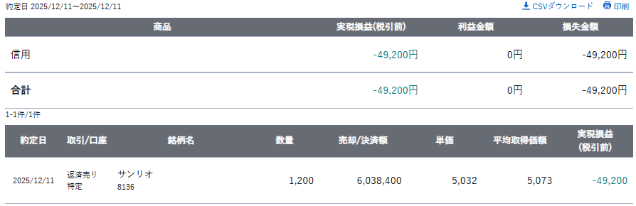 「サンリオ」の評価損益が-20%を超えたので、買い増しをしようと思いましたが、