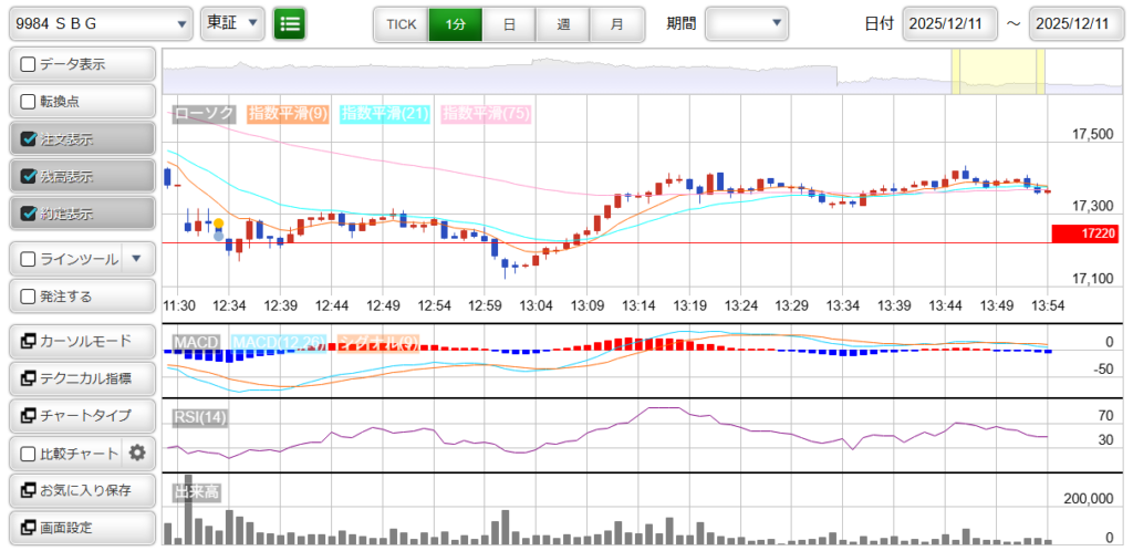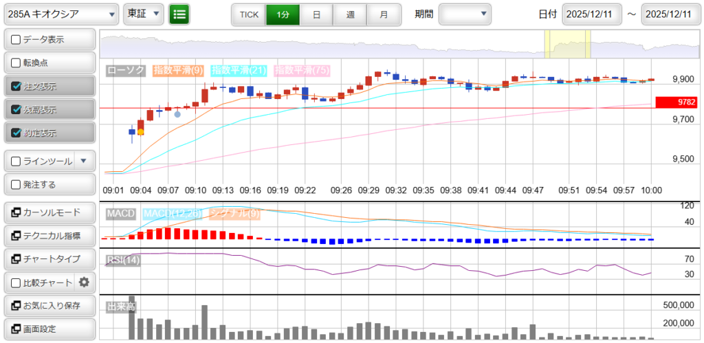 「歩み値で買い約定が連発したから」と「株価が上がりだした」のも理由です。